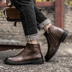 夏季高帮马丁靴男士真皮鞋隐形内增高男鞋10cm8C...