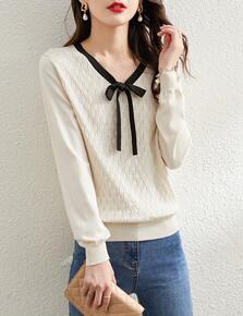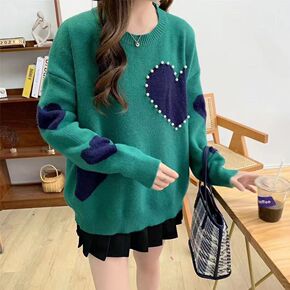2021秋季新款撞色法式复古爱心小众针织衫圆领气质...