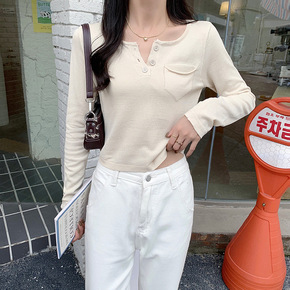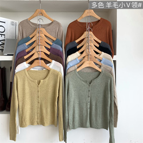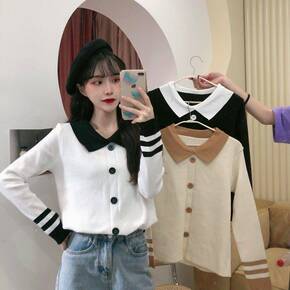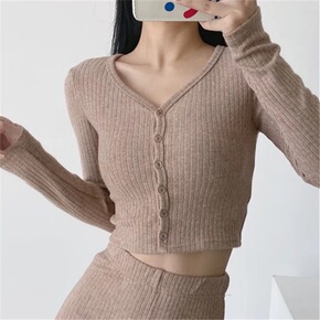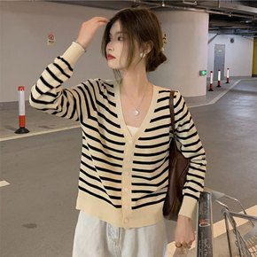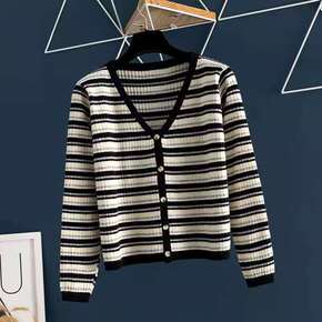 2021新款春秋季女装针织衫短款毛衣韩版外搭上衣条...