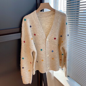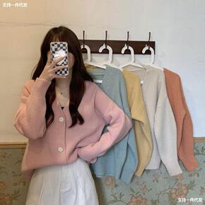 温柔韩风针织毛衣外套女秋冬2021新款小个子宽松外...