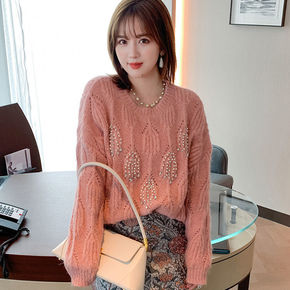 甜美减龄重工钉珠钩花镂空软糯舒适毛衣女装休闲秋冬打...