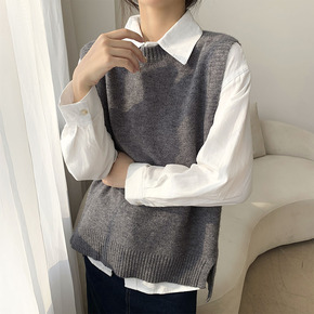 2021秋季日系森女风韩风圆领气质遮肉显瘦无袖针织...