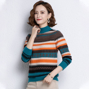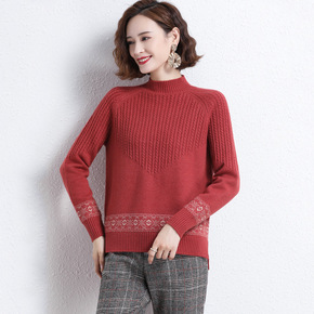 加绒加厚套头纽扣半高领毛衣女2019秋冬新款修身针...