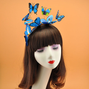 新款欧美创意彩色立体蝴蝶发箍 派对舞会头箍 表演出...