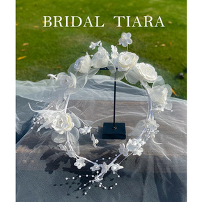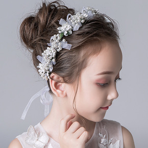 儿童花环头饰森系奶白色头花唯美编织新娘发饰韩式珍珠...