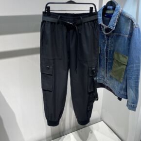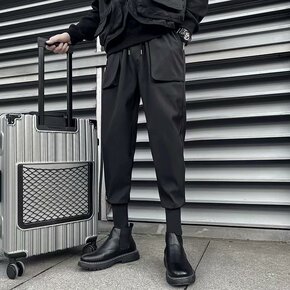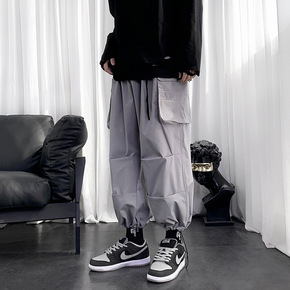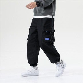 宽松男装春季新款黑色工装飘带国潮束脚裤男士长裤GB...