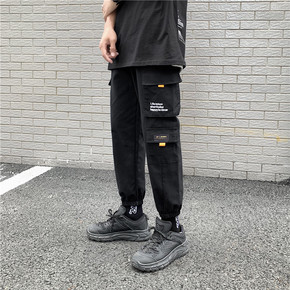 工装裤男潮牌韩版夏季港风休闲束脚裤青少年潮流宽松百...