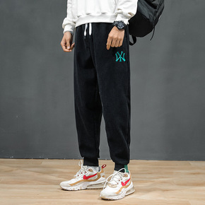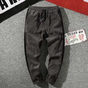 亚马逊秋冬灯芯绒厚款大码宽松男式休闲束脚裤日系潮流...