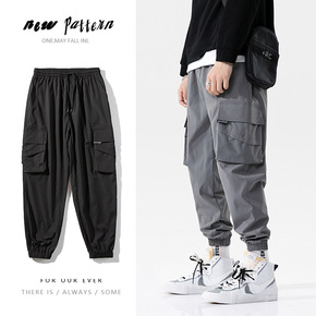 春夏季工装裤男薄款潮牌宽松束脚裤大码小脚休闲九分裤...
