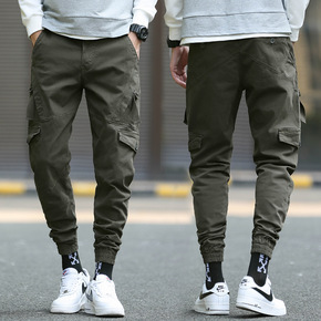 春秋新款运动束脚裤潮流休闲裤青少年纯色多袋哈伦裤男...