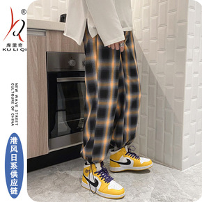 男士休闲裤子春秋韩版潮牌格子男裤迷彩卫裤潮流束脚裤...