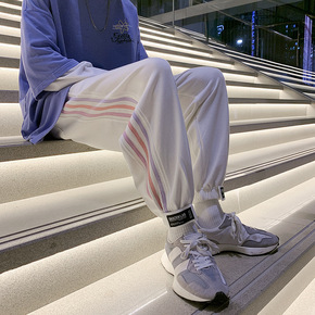 一件代发彩色条纹运动裤男魔术贴束脚裤中性潮流男士休...