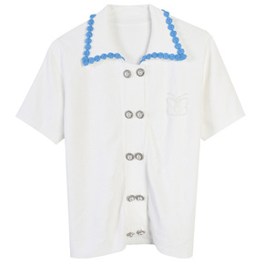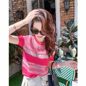 特价清仓韩版2020翻领撞色针织衫短袖修身上衣女打...