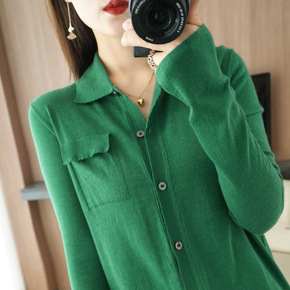 POLO领新100羊毛衫女衬衣领羊绒衫时尚针织打底...