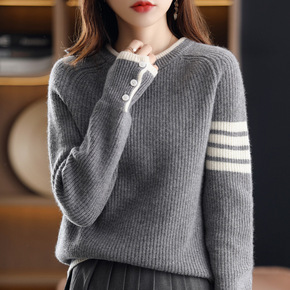 2021秋冬新款羊毛衫女低圆领长袖插肩毛衣休闲显瘦...