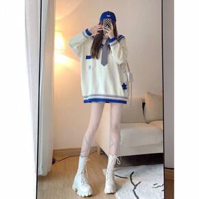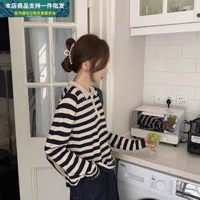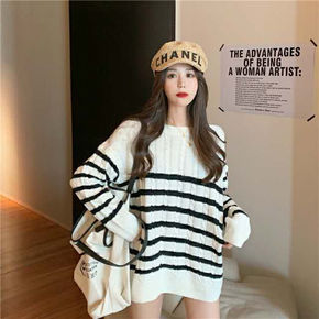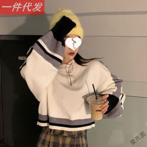一件代发韩版宽松黑条纹长袖套头毛衣2020春秋款慵...