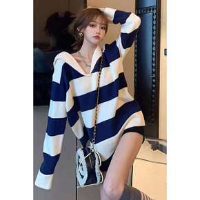 毛衣女条纹毛衣女法式复古海军2021新款学生韩版宽...