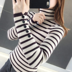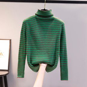 半高领条纹针织衫女2021冬季内搭打底衫上衣潮毛衣...