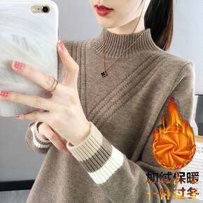 毛衣加绒/加厚秋冬新款毛衣女半高领宽松外穿加厚内搭...