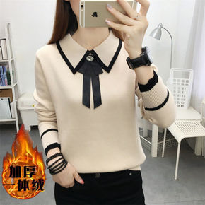 加绒加厚打底衫女内搭秋冬毛衣2021新款一体绒娃娃...