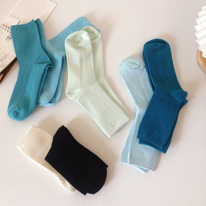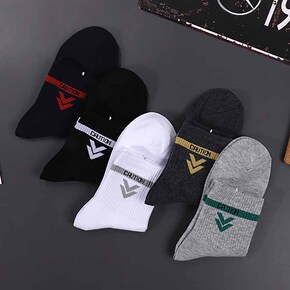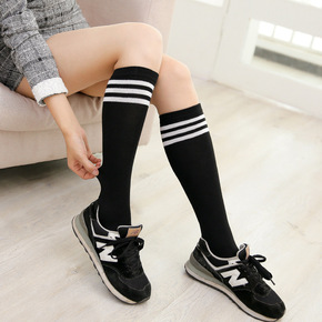 面料名称:全棉 产品类别:普通休闲袜 双针袜:否:单针袜 货号:新款二杠中筒袜 无骨缝制:是...