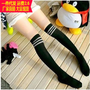 春夏三条杠学生中筒袜子 提花条纹运动女中筒棉袜子...