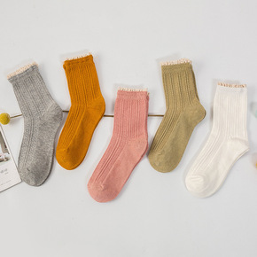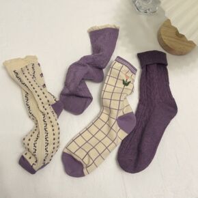茶颜韩紫色秋冬紫薇花女可爱花边中筒袜棉甜美少女学院...