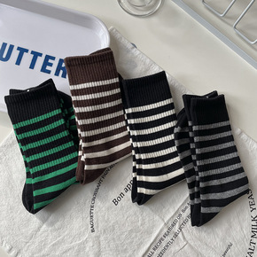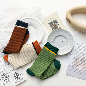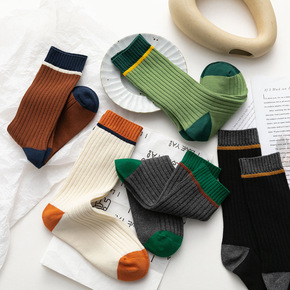 2020秋冬新款条纹潮袜日系女士中筒袜子学生个性撞...