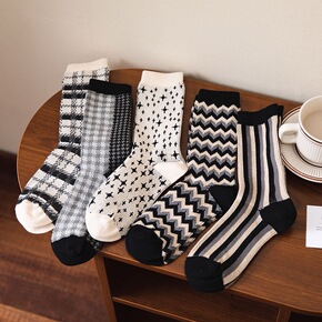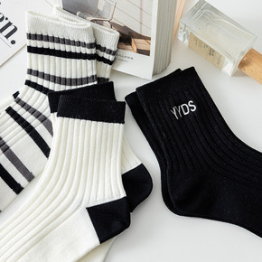 21秋冬款日系双针双路袜子韩版黑白系列星空女袜in...