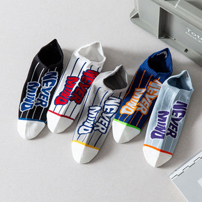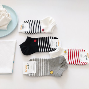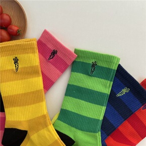 春夏条纹拼色胡萝卜丁刺绣棉透气袜子情侣街头ins学...