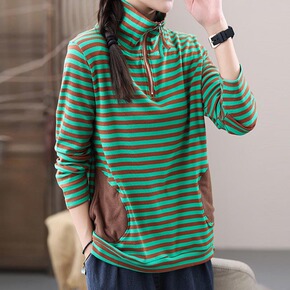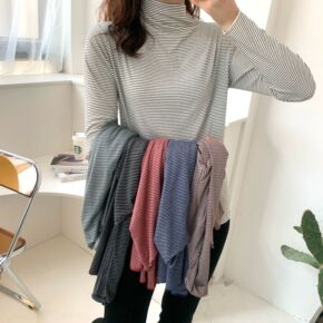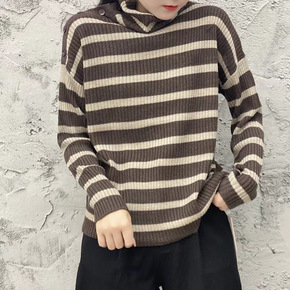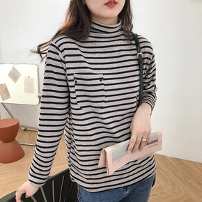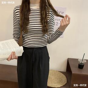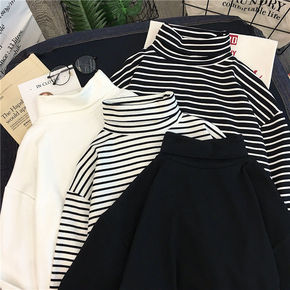 【定制】条纹长袖女2021新款高领宽松韩版简约内搭...