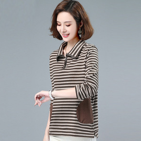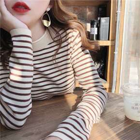 加绒/不加绒保暖黄金绒T恤女学生加厚秋冬条纹长袖半...