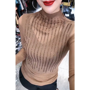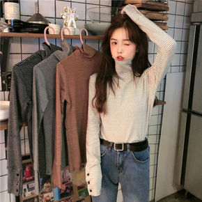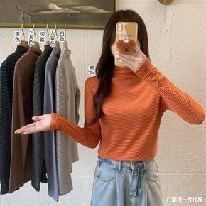 【薄款/加绒款】秋冬新款修身打底衫长袖半高领恤女条...