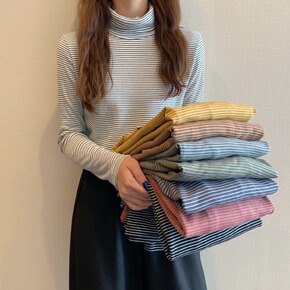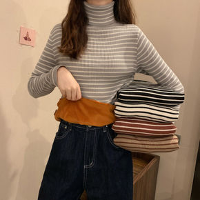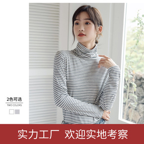 2021年新款早秋季条纹高领打底衫ins女装长袖内...