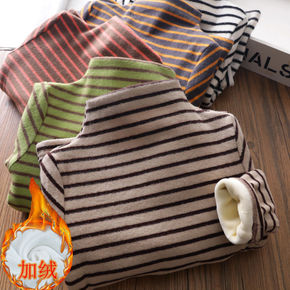 复合加绒打底衫女长袖2020新款秋冬保暖加厚条纹半...