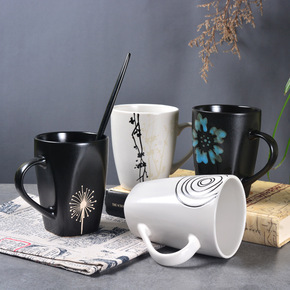 高颜值马克杯带盖勺创意家用杯子陶瓷办公室水杯情侣咖...