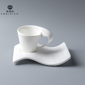 中式拉丝纯白骨瓷咖啡杯碟套装简约陶瓷家用酒店茶杯咖...