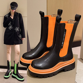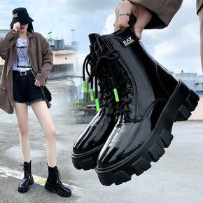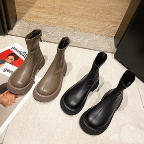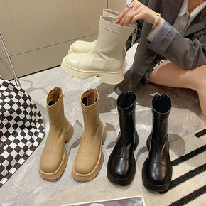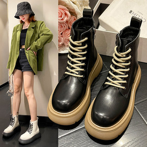 2022年新款松糕厚底马丁靴女英伦风帅气中筒时装靴...