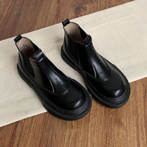 一件代发靴小个子增高潮酷短靴圆头复古松糕厚底马丁靴...