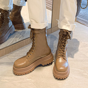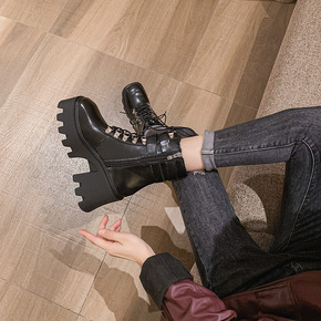2021松糕厚底骑士靴女马丁靴增高显瘦休闲机车靴圆...