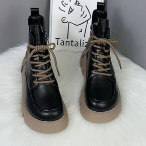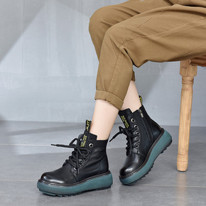 2022新款松糕厚底欧美马丁靴女跨境亚马逊系带休闲...