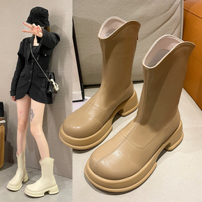 中筒靴马丁靴女靴子2022年秋冬新款加绒保暖短靴系...