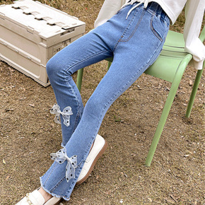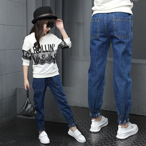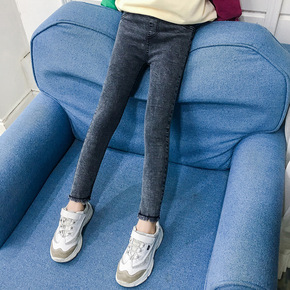 女童牛仔裤春秋装薄款洋气黑色儿童打底裤外穿中大童装...