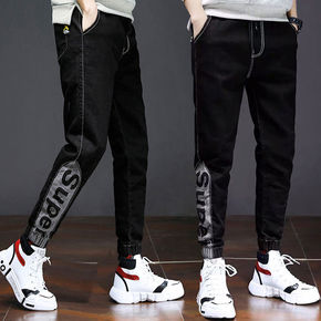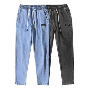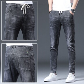 时尚新款灰色牛仔裤男韩版潮流修身弹力小脚裤时尚松紧...