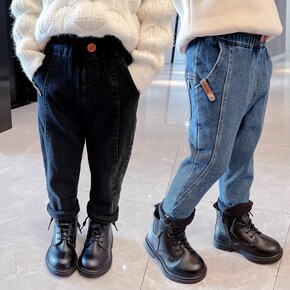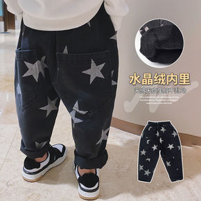 韩版小女孩印花爱心高弹牛仔裤秋冬装新款洋气女童加绒...