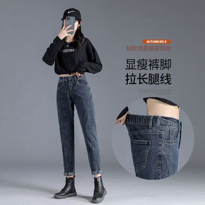 牛仔裤女2022年春秋新款松紧腰直筒束脚显瘦百搭九...