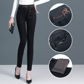 冬季牛仔裤女保暖加厚紧身小脚裤植绒牛仔裤松紧高腰腰...