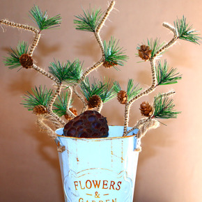 仿真植物批发 5头长枝松叶 仿真松树叶 花材绿化植...