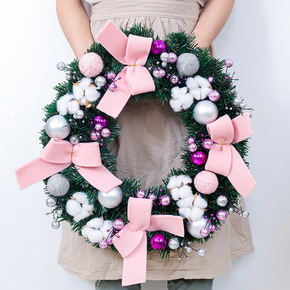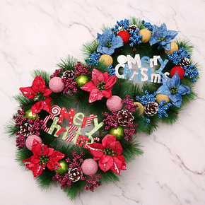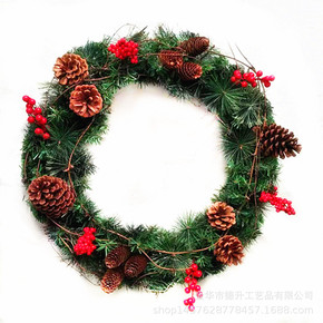 跨境新款圣诞装饰圣诞节装饰品红格松针圣诞花环挂件欢...