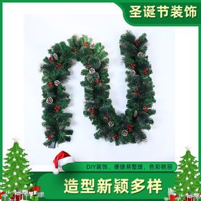 圣诞节装饰藤条花环圣诞树加密松针藤条装饰品场景布置...